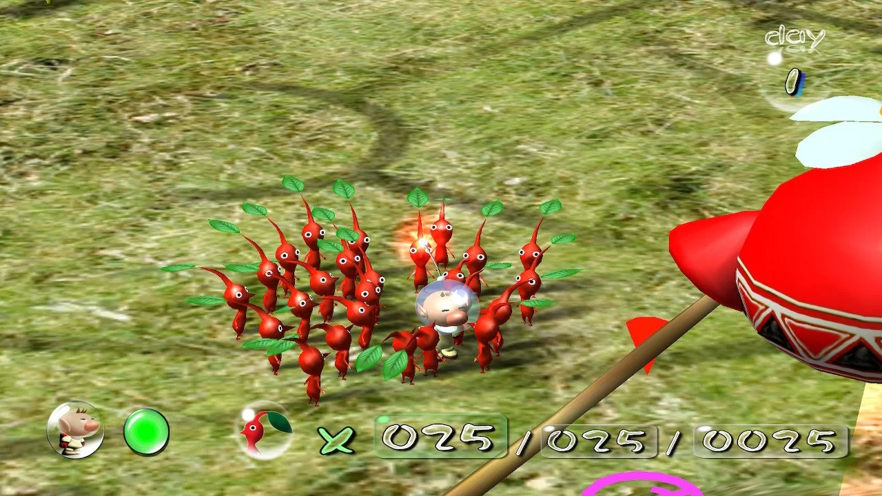 Olimar wakes up to discover his ship has crashed, the parts have been scattered across this alien planet, and he must find a way to return home. During a quick exploration he finds the red “onion” which produces a single seed which turns out to be one red Pikmin.