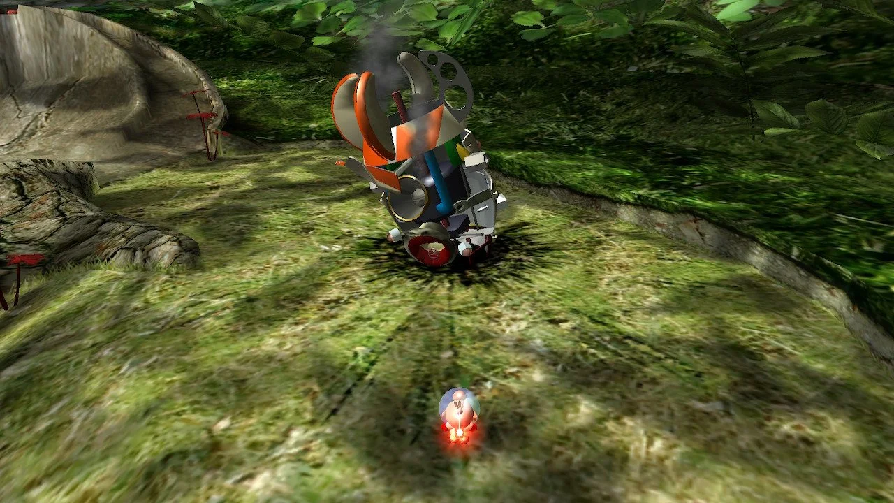The rest of the level becomes about learning how to grow more Pikmin, how to lead them, how to give them commands, and finally discovering the engine of the ship. I note it’s a rather cute narrative-design structure that the engine is the first machine part found, while the Pikmin are really the engine that pushes Olimar’s original journey.